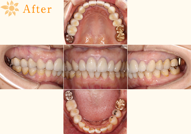 歯周基本治療・むし歯治療・セラミック冠による補綴治療・上下前歯の部分矯正・抜歯・上顎抜歯部位の義歯作成